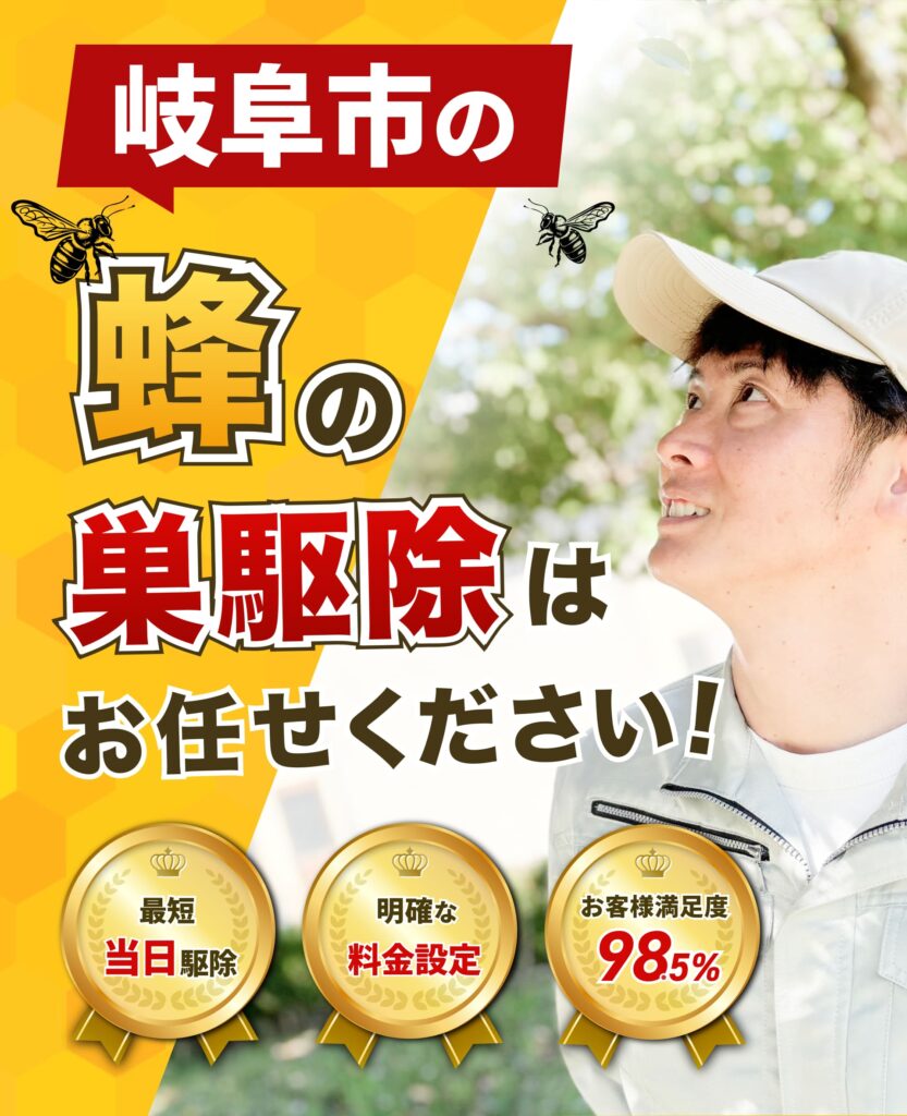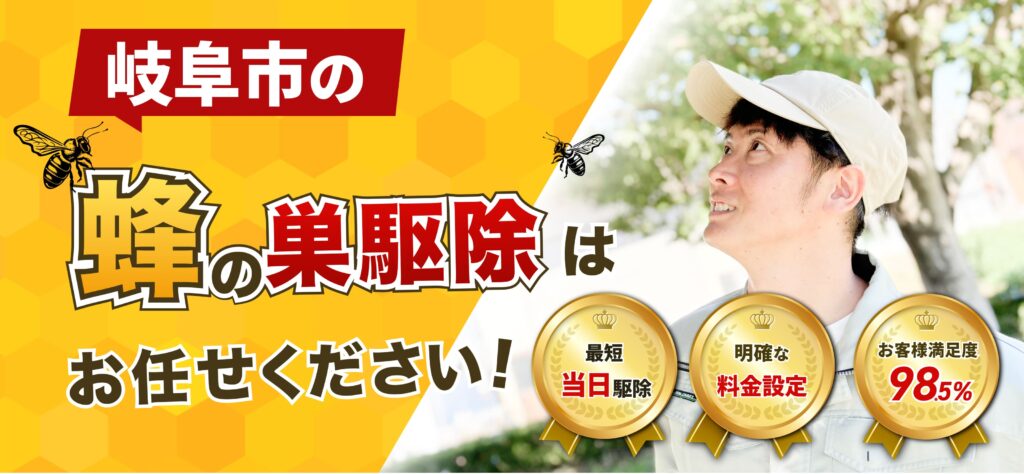 岐阜市は、市街地と山間部が近く、住宅街・公園・河川沿いまで多様な環境が密集しているため、複数の種類の蜂が生息しやすい地域です。蜂を見かけたら無理に近づかず、必ず安全を確保してからご相談ください。