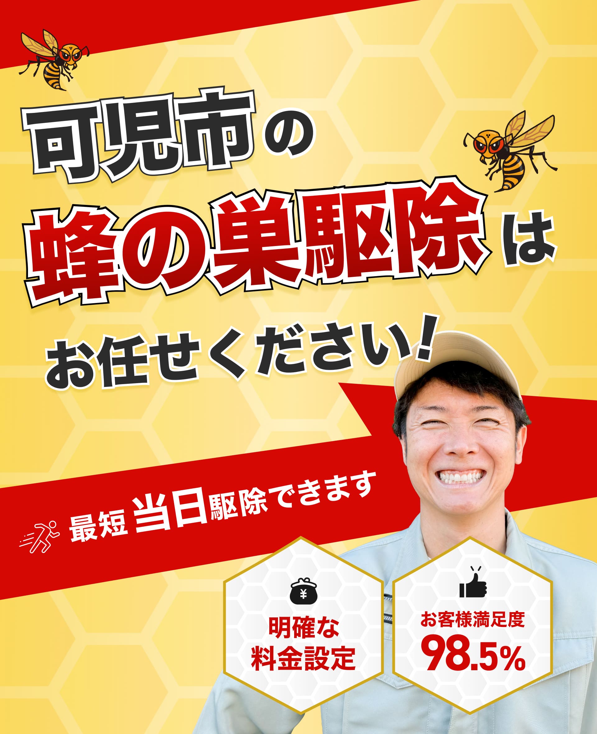 蜂の駆除、巣の撤去、薬剤、戻りバチ対策(スズメバチのみ)、簡易清掃、1か月再発保証