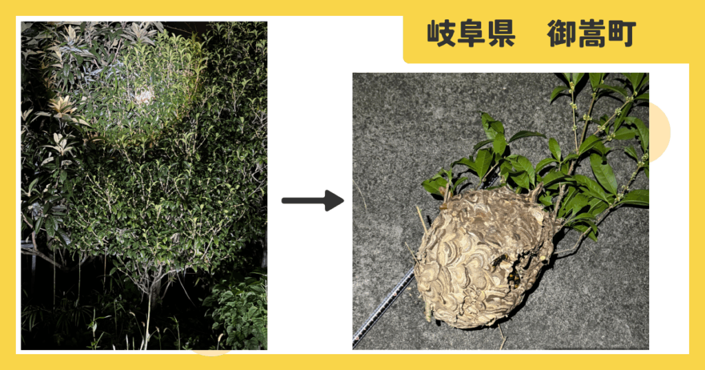 岐阜県可児郡御嵩町 庭木 コガタスズメバチ 蜂の巣駆除 2025年10月