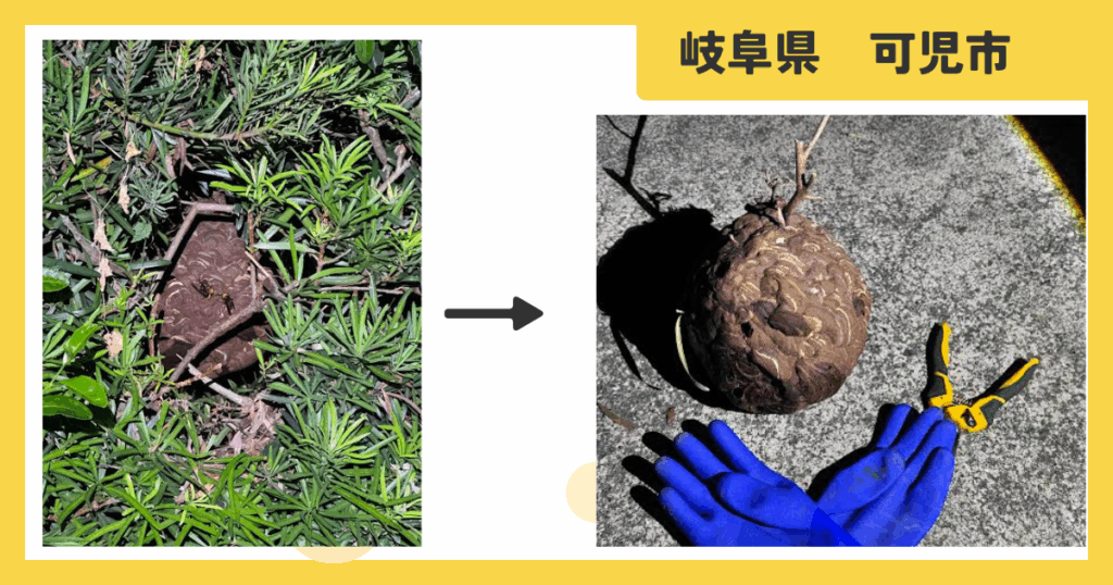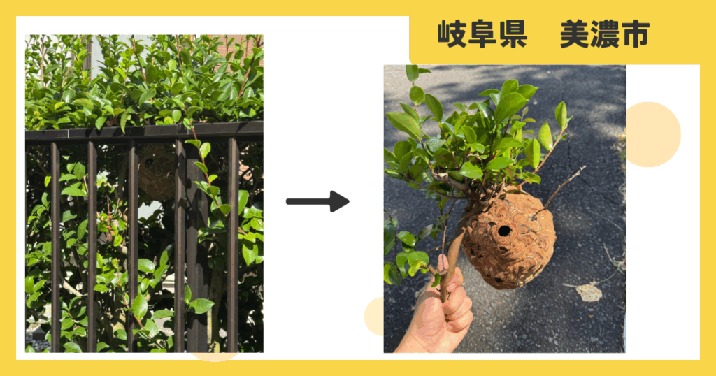 岐阜県大垣市 庭の垣根 コガタスズメバチ 蜂の巣駆除 2025年9月