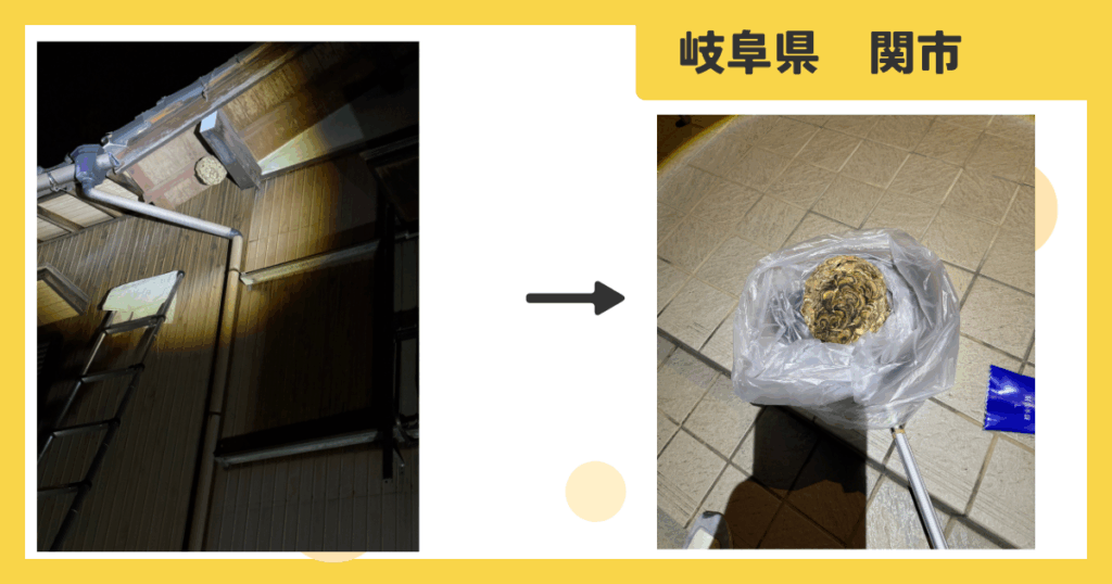 岐阜県岐阜市 2階軒下 キイロスズメバチ 蜂の巣駆除 2025年10月