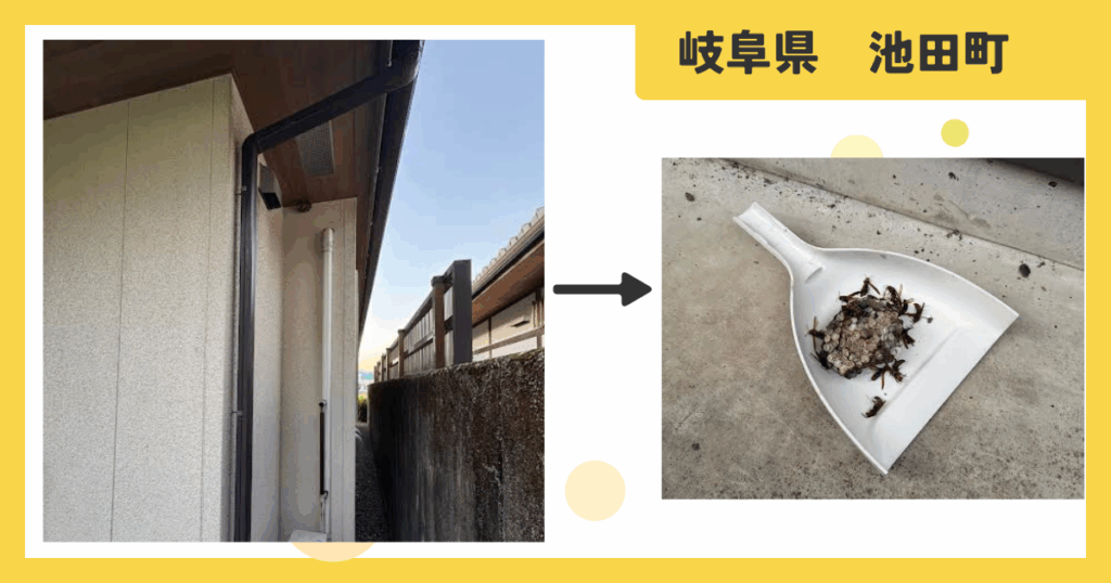 岐阜県揖斐郡池田町 グループホーム 1F軒下 アシナガバチ 蜂の巣駆除 2025年9月