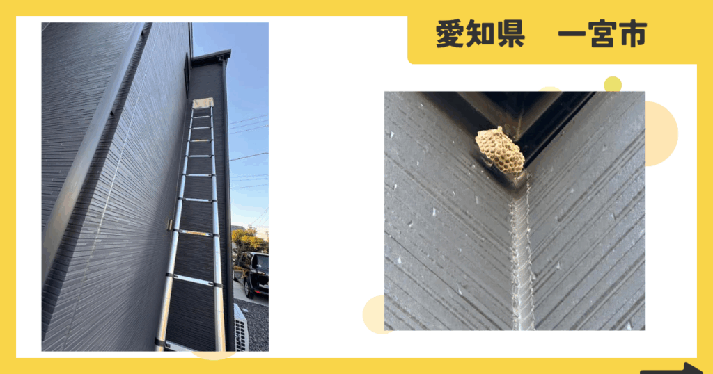 愛知県一宮市 高さ6m 2階軒下 アシナガバチ 蜂の巣駆除 2025年9月