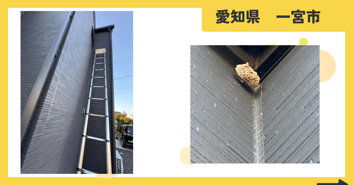 愛知県一宮市 高さ6m 2階軒下 アシナガバチ 蜂の巣駆除 2025年9月