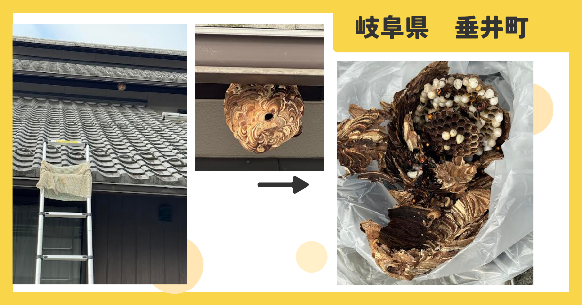 岐阜県不破郡垂井町 2階軒下 スズメバチ 蜂の巣駆除 2025年9月