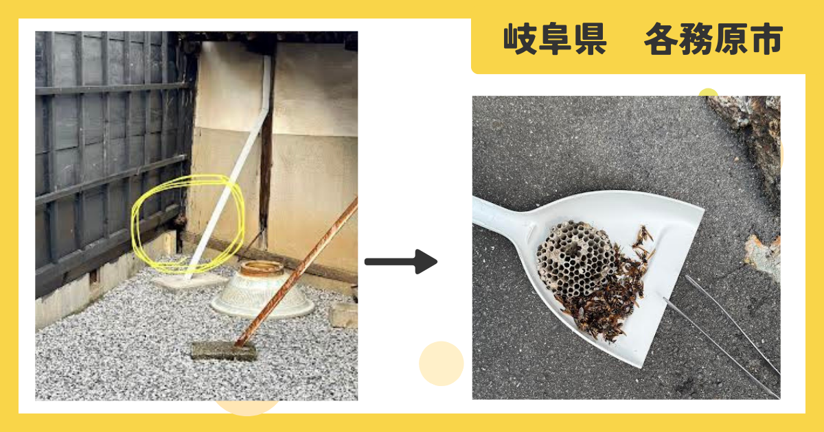 岐阜県各務原市で、床下近くにできたアシナガバチの巣を駆除しました。