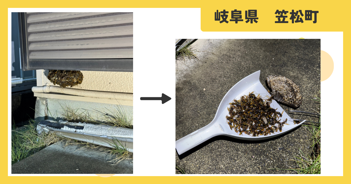 岐阜県笠松町 戸袋下 アシナガバチ 蜂の巣駆除 2025年9月