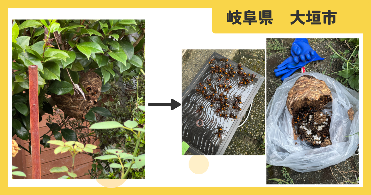 岐阜県大垣市 庭の垣根 コガタスズメバチ 蜂の巣駆除 2025年9月