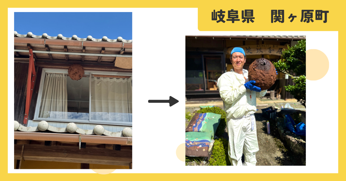 岐阜県関ケ原町 2階軒下 キイロスズメバチ 蜂の巣駆除 2025年10月