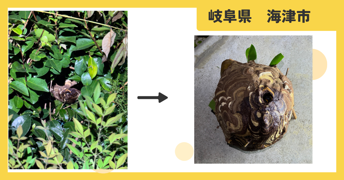 岐阜県海津市 垣根の中 スズメバチ 蜂の巣駆除 2025年10月