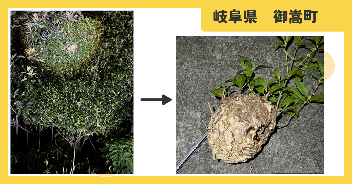 岐阜県可児郡御嵩町 庭木 コガタスズメバチ 蜂の巣駆除 2025年10月