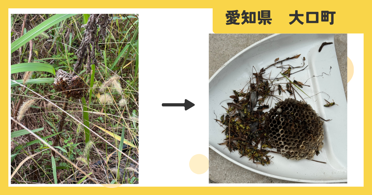 愛知県丹羽郡大口町 庭 アシナガバチ 蜂の巣駆除 2025年10月