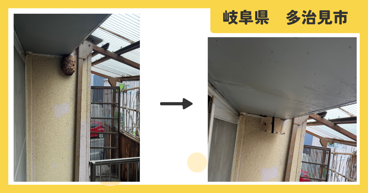 岐阜県岐阜市 旅館のベランダ コガタスズメバチ 蜂の巣駆除 2025年10月